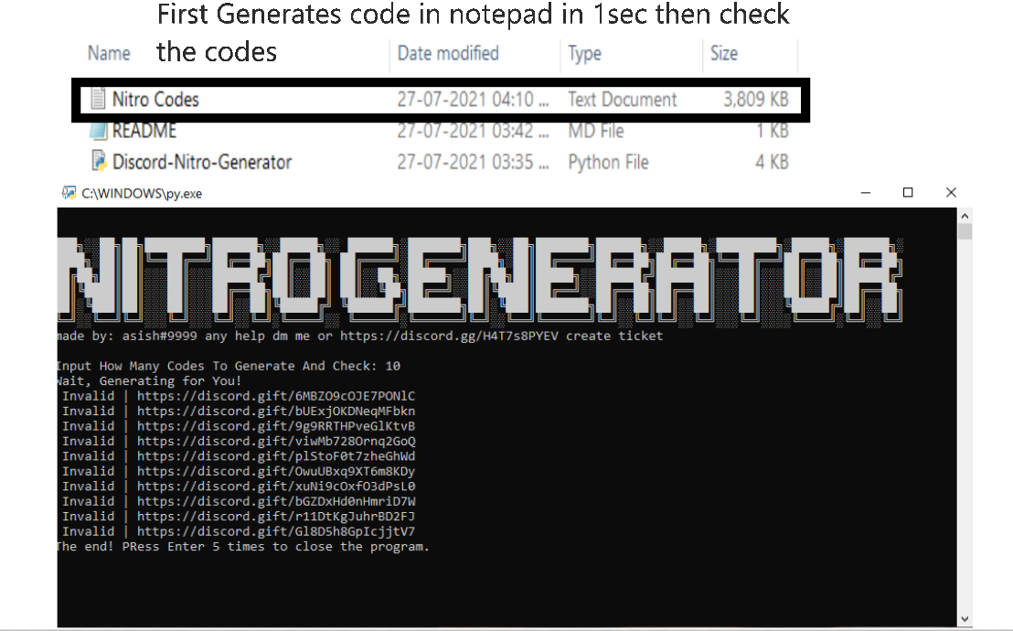 MOST OF THE CODES WONT WORK. This is discord nitro code generator and checker made with python. This will generate nitro codes and checks if the code is valid or not.